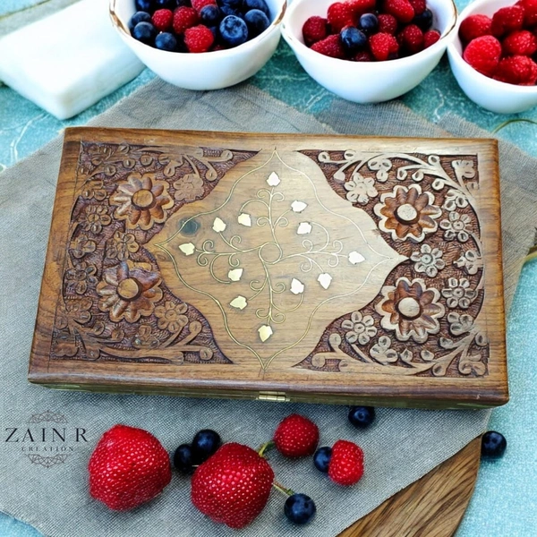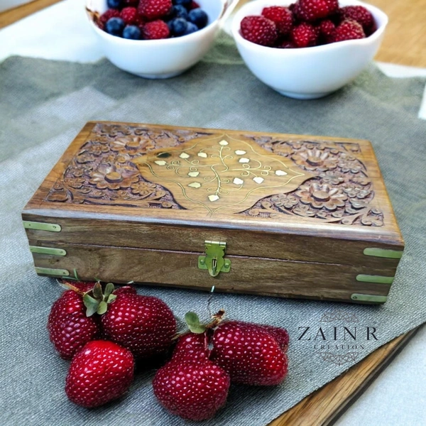 Exquisite Jewellery Box Carving with Brass Inlay - Timeless Elegance by ZAIN R CREATION